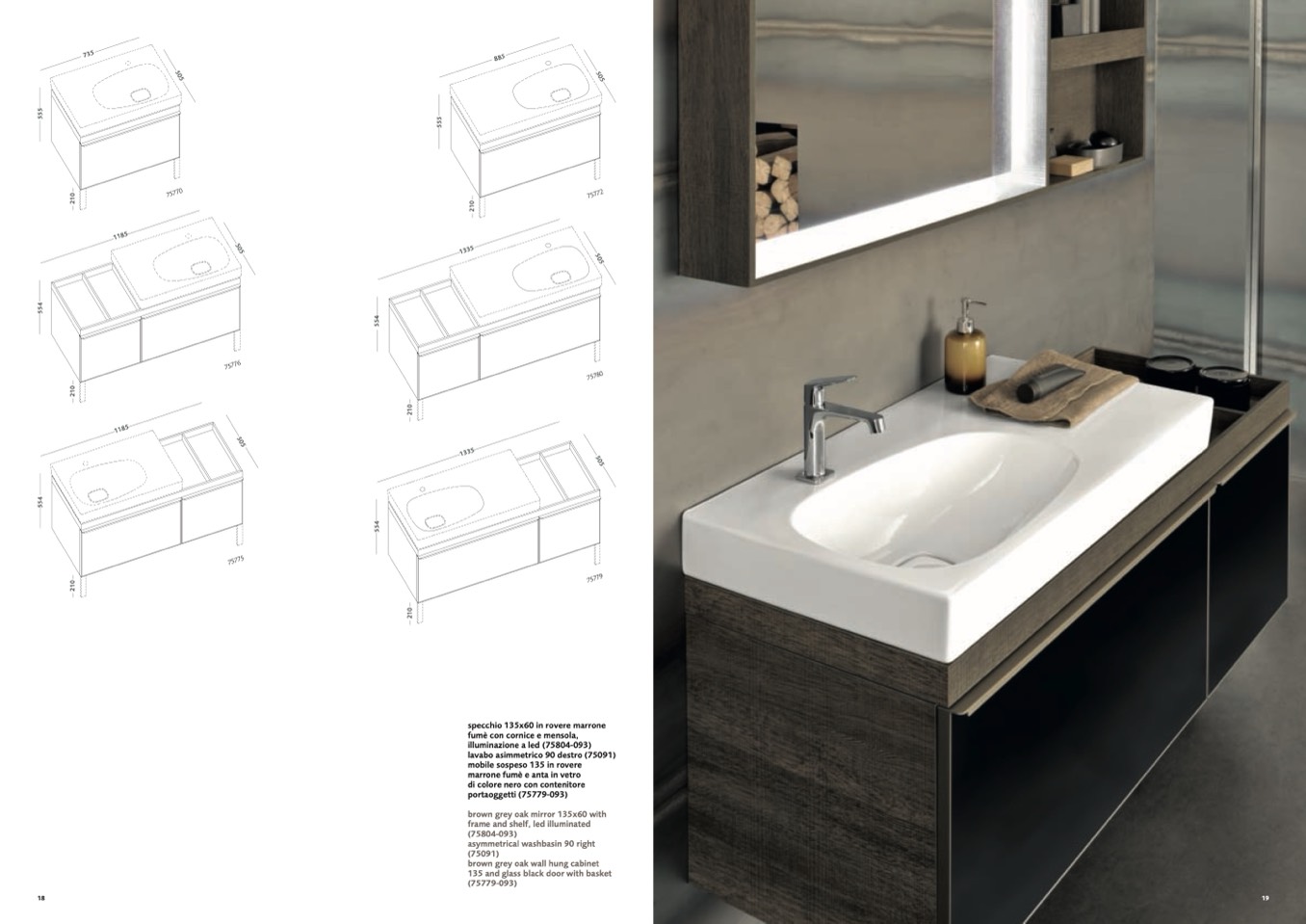 lavabo asimmetrico 90 destro (75091)