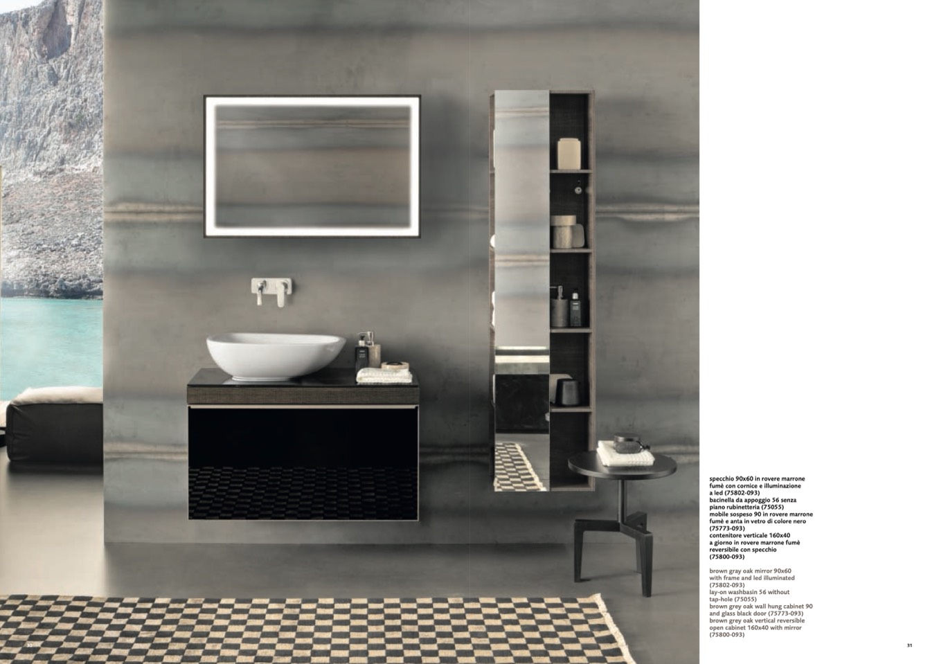 brown gray oak mirror 90x60