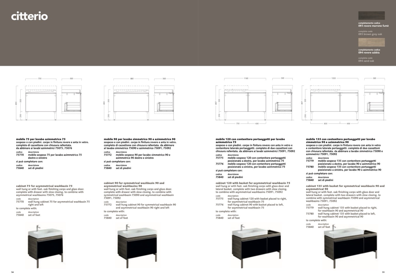 al lavabo simmetrico 75090 e asimmetrico 75091, 75092
