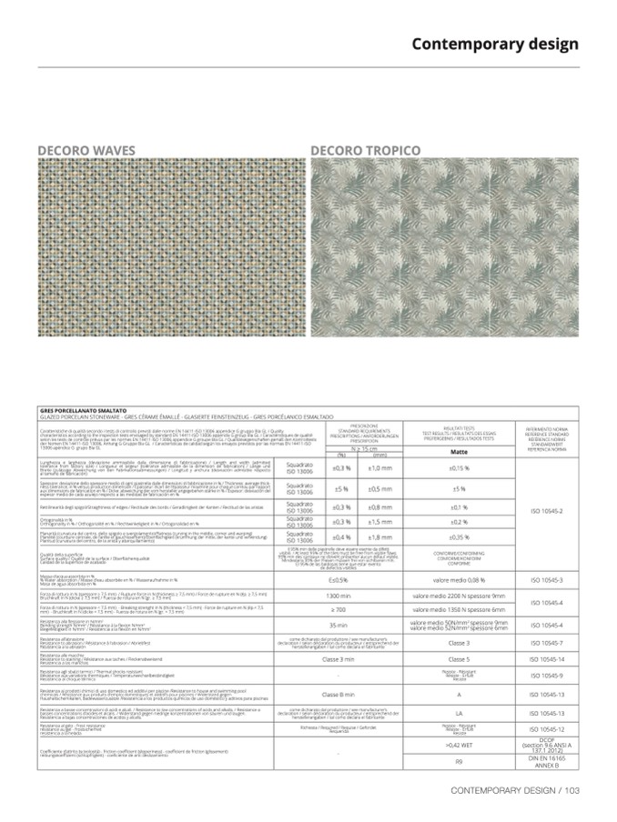 teristics according to the inspection tests envisaged by standard EN 14411-ISO 13006 appendix G group BIa GL / Caractéristiques de qualit