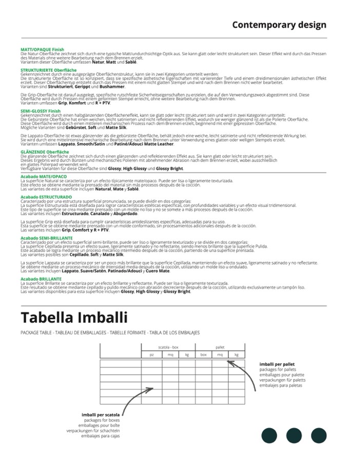 ficie Natural se caracteriza por un efecto típicamente mate/opaco. Puede ser lisa o ligeramente texturizada