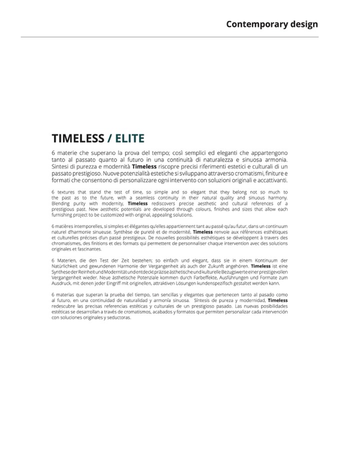 naturel d’harmonie sinueuse. Synthèse de pureté et de modernité, Timeless renvoie aux références esthétiques