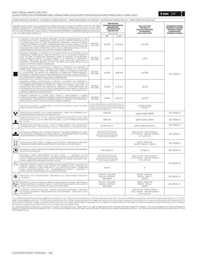 CARATTERISTICHE TECNICHE - TECHNICAL CHARACTERISTICS - CARACTERISTIQUES TECHNIQUES - TECHNISCHE EIGENSCHAFTEN - CARACTERÍSTICAS TÉCNICAS
