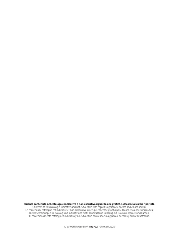 Quanto contenuto nel catalogo è indicativo e non esaustivo riguardo alle grafiche, decori e ai colori riportati.