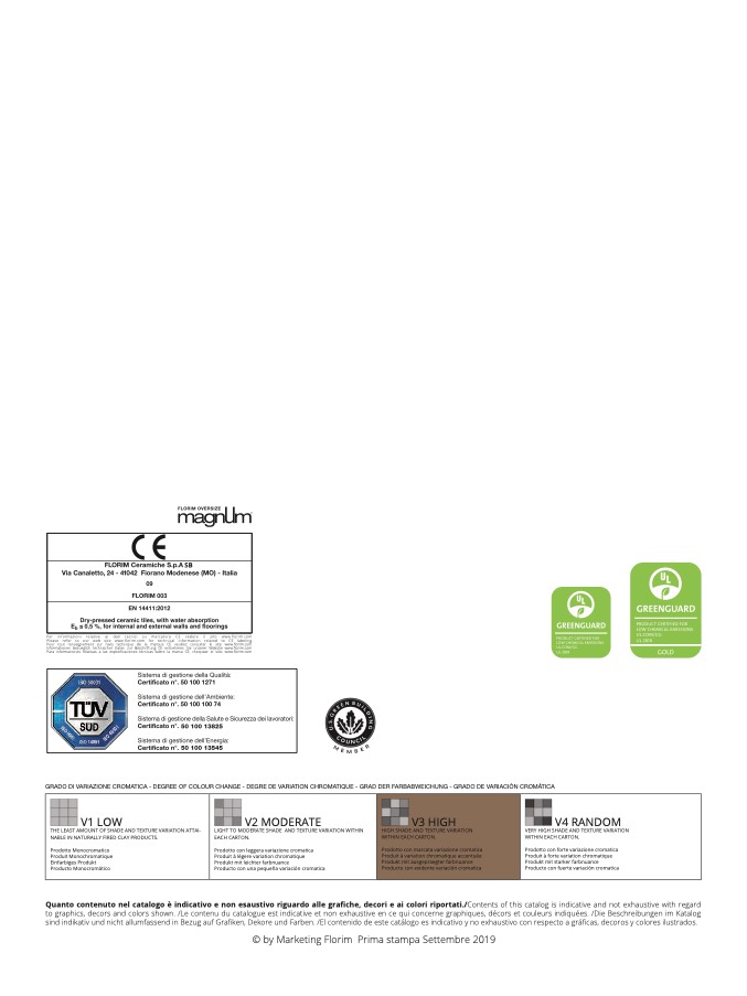 Per informazioni relative ai dati tecnici su marcatura CE vedere il sito www.florim.co