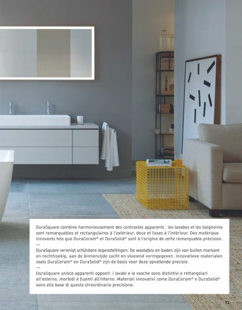 DuraSquare combine harmonieusement des contrastes apparents : les lavabos et les baignoires