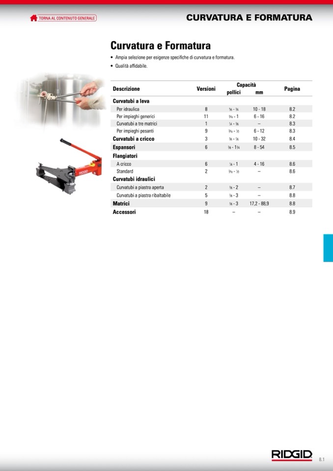 • Ampia selezione per esigenze specifiche di curvatura e formatura.
