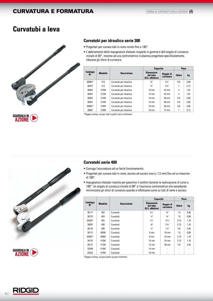 *Doppio utilizzo, sia per tubi in pollici sia in millimetri.