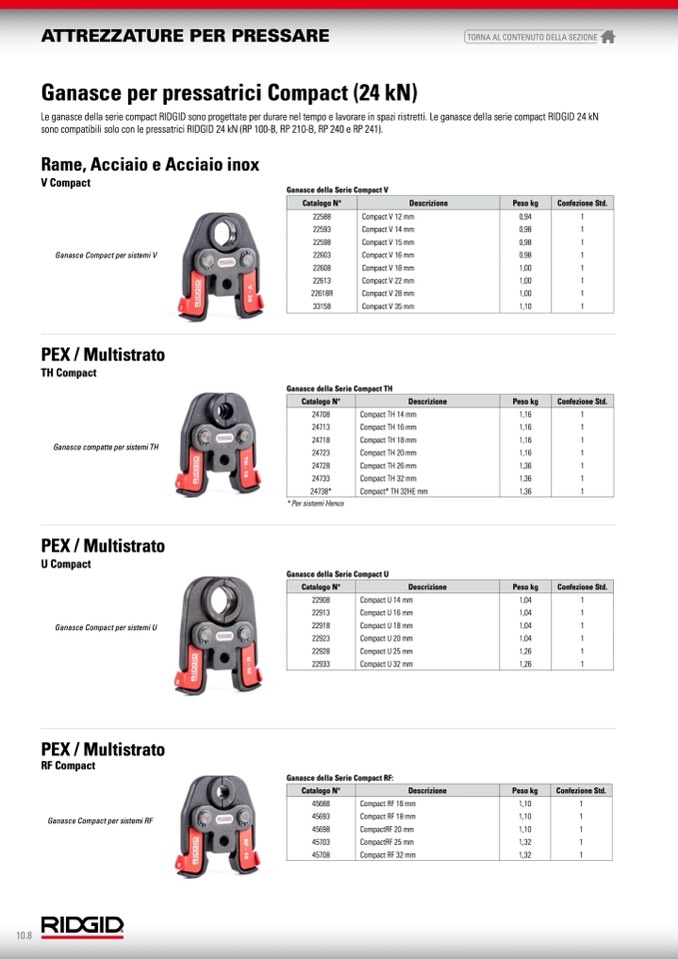 sono compatibili solo con le pressatrici RIDGID 24 kN (RP 100-B, RP 210-B, RP 240 e RP 241).