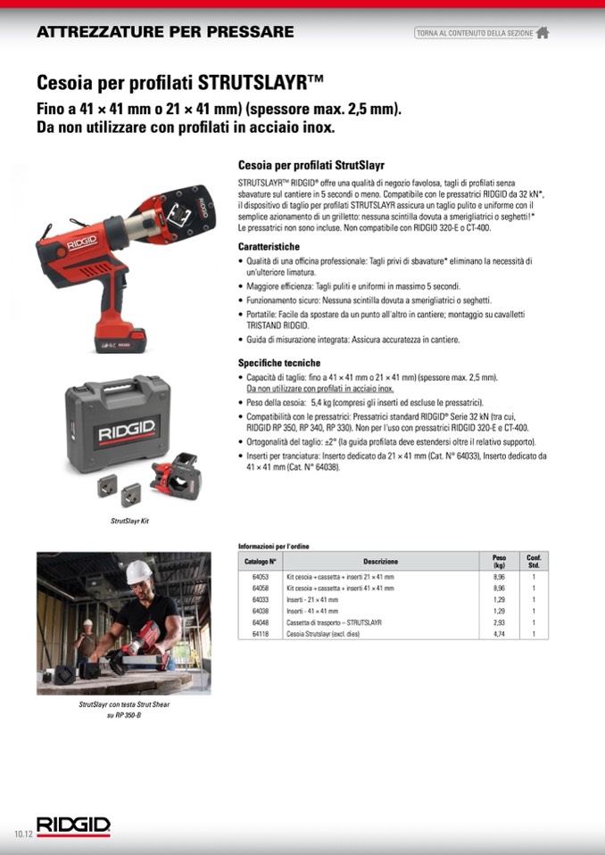 • Compatibilità con le pressatrici: Pressatrici standard RIDGID® Serie 32 kN (tra cui,