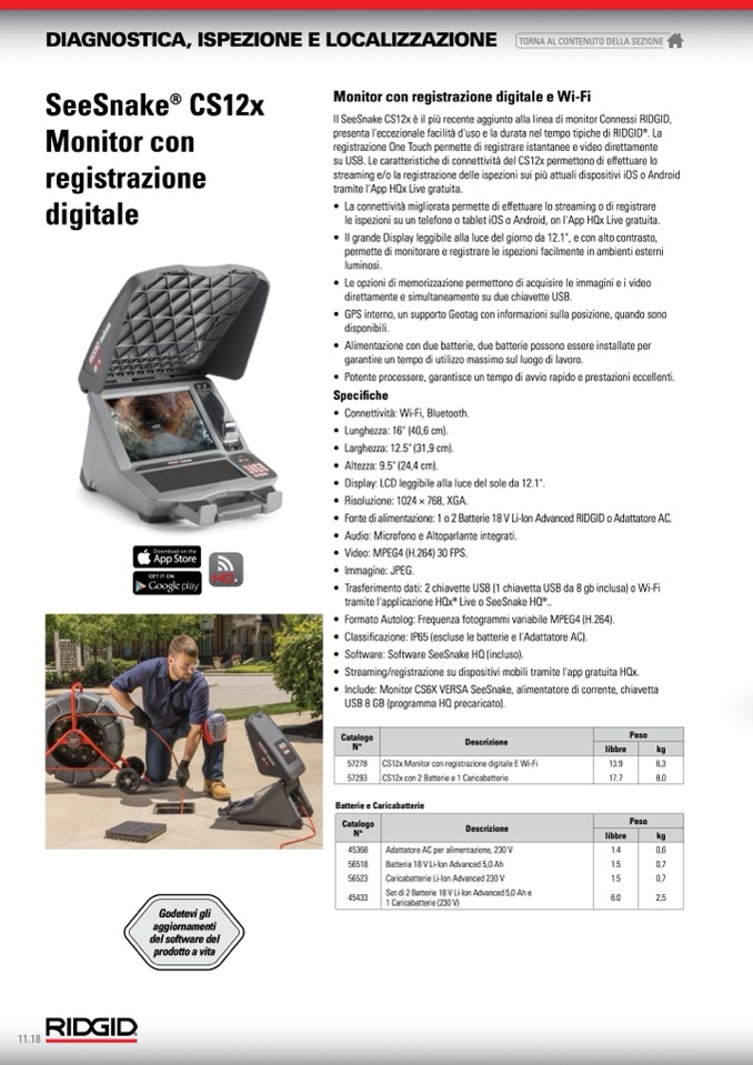 Il SeeSnake CS12x è il più recente aggiunto alla linea di monitor Connessi RIDGID,