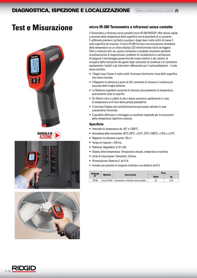 Il Termometro a infrarossi senza contatto micro IR-200 RIDGID® offre letture rapide
