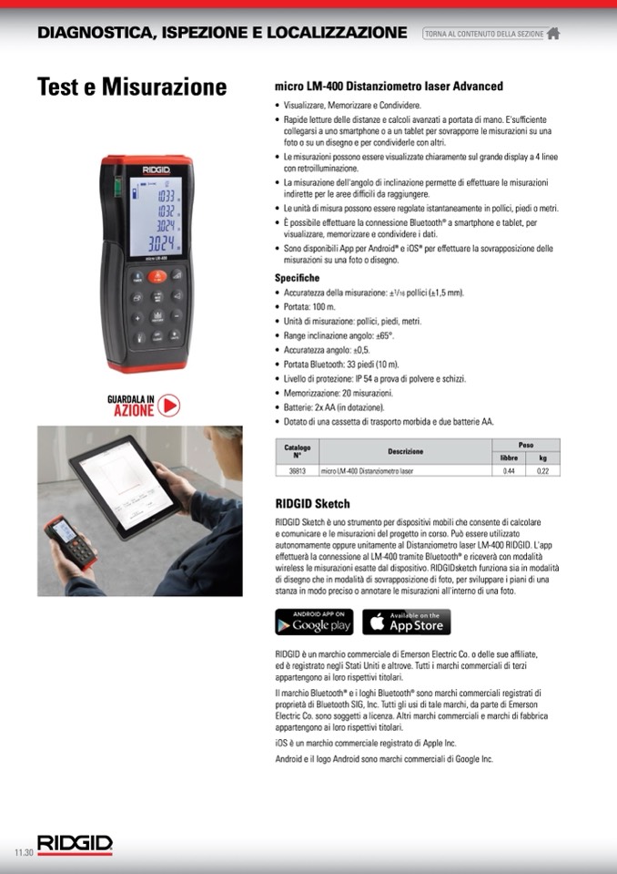 autonomamente oppure unitamente al Distanziometro laser LM-400 RIDGID. L'app