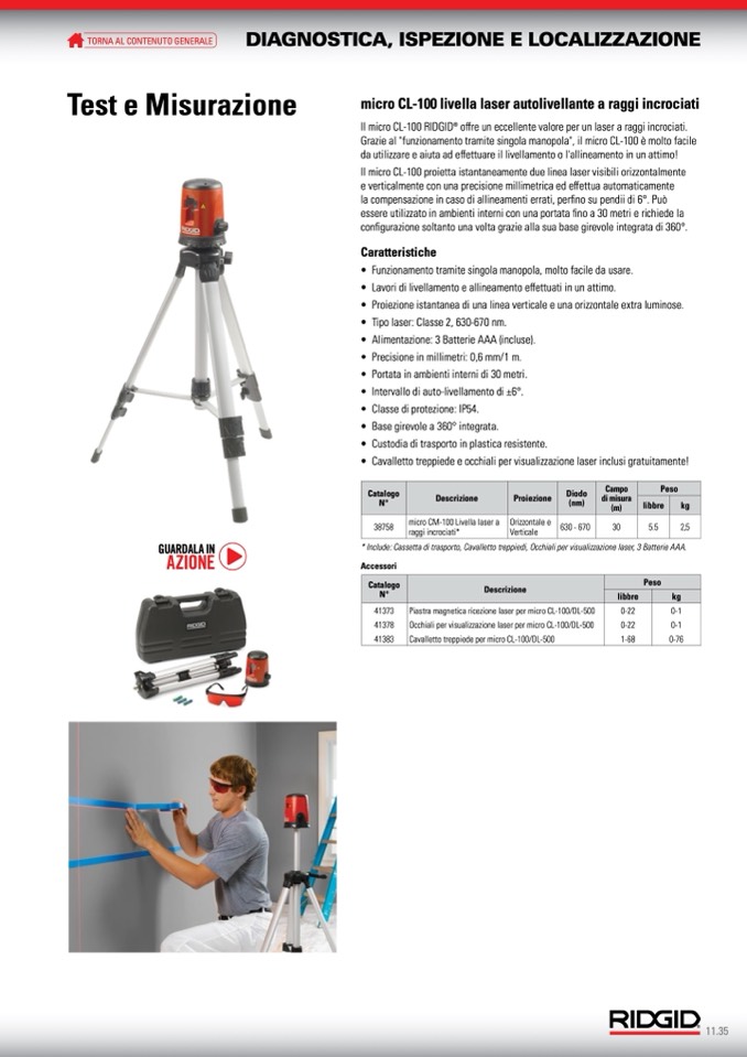 * Include: Cassetta di trasporto, Cavalletto treppiedi, Occhiali per visualizzazione laser, 3 Batterie AAA.