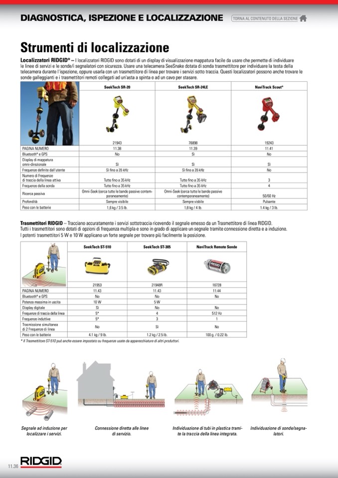 telecamera durante l'ispezione, oppure usarla con un trasmettitore di linea per trovare i servizi sotto traccia. Questi localizzatori possono anche trovare le