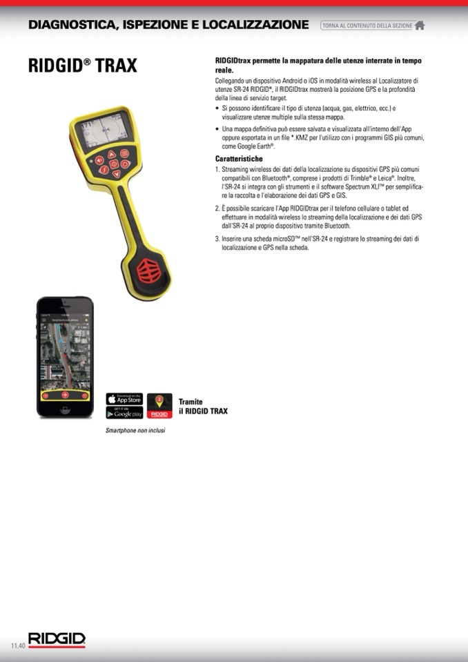utenze SR-24 RIDGID®, il RIDGIDtrax mostrerà la posizione GPS e la profondità