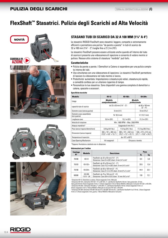 Le stasatrici RIDGID FlexShaft sono stasatrici leggere, compatte e estremamente