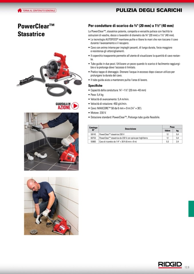 • Dotazione standard: PowerClearTM, Prolunga tubo guida flessibile.
