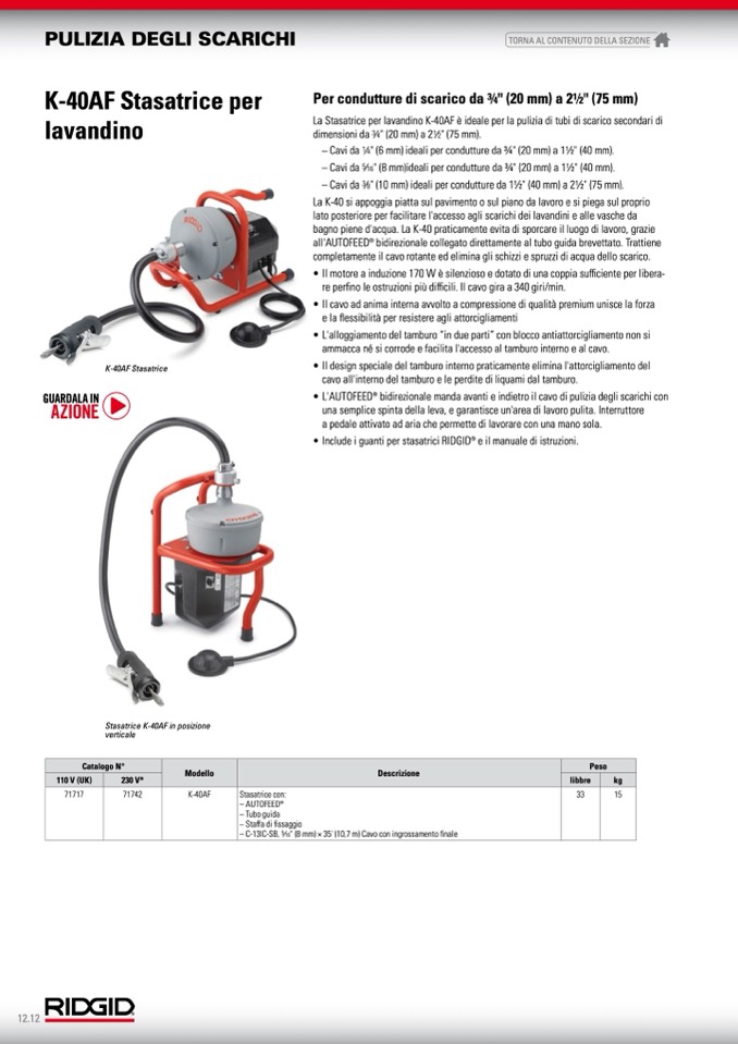 La Stasatrice per lavandino K-40AF è ideale per la pulizia di tubi di scarico secondari di