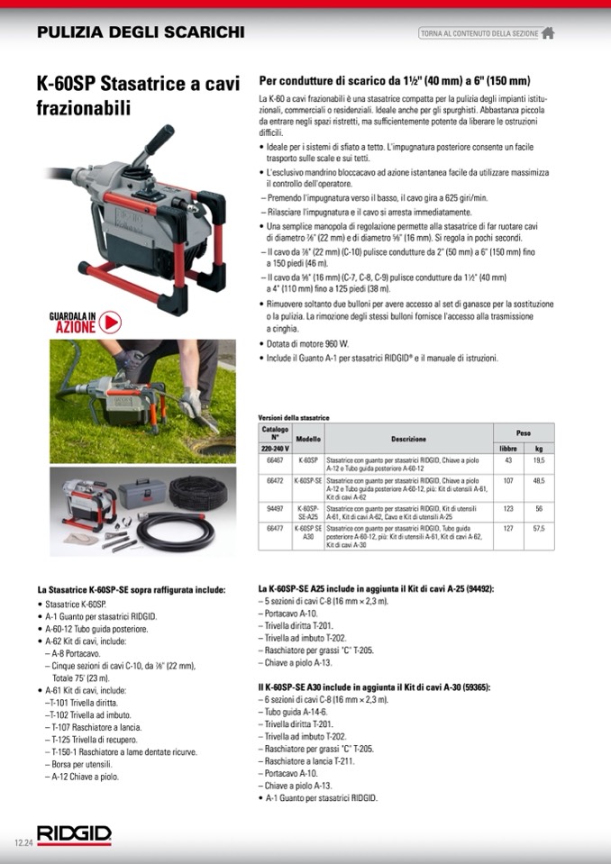 La K-60 a cavi frazionabili è una stasatrice compatta per la pulizia degli impianti istitu-