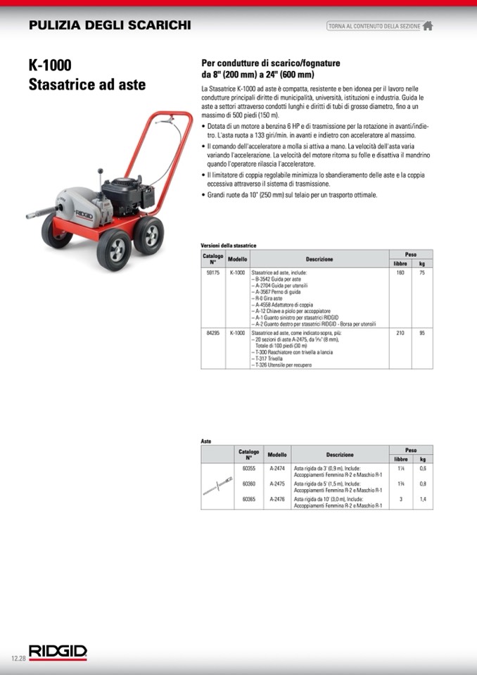 aste a settori attraverso condotti lunghi e diritti di tubi di grosso diametro, fino a un