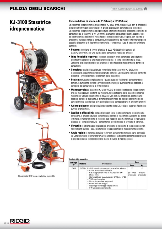 condutture da 2" (50 mm) a 10" (250 mm), avanzando attraverso liquami, sapone, gras-