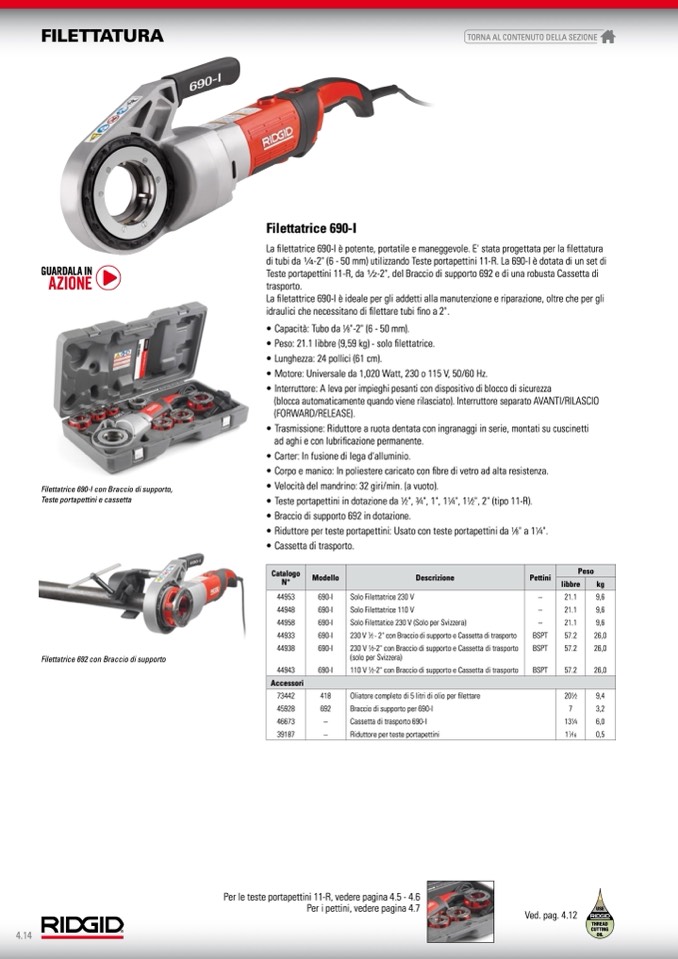 di tubi da 1 ⁄4 -2" (6 - 50 mm) utilizzando Teste portapettini 11-R. La 690-I è dotata di un set di