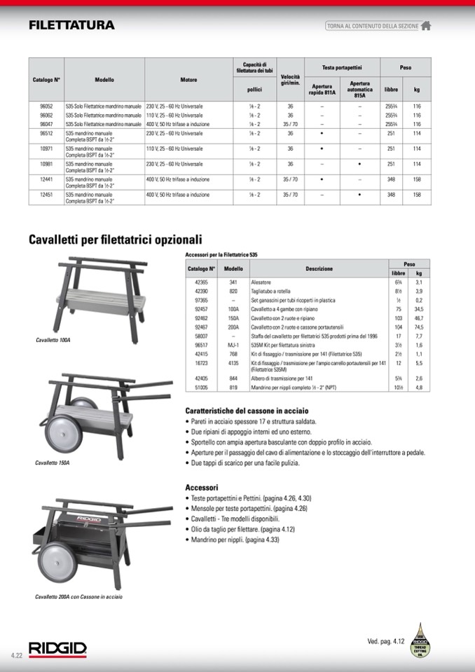 • Teste portapettini e Pettini. (pagina 4.26, 4.30)