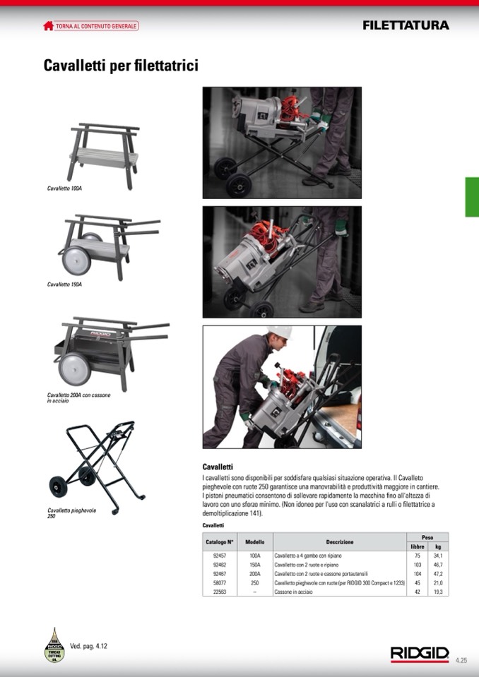 Cavalletto pieghevole con ruote (per RIDGID 300 Compact e 1233)