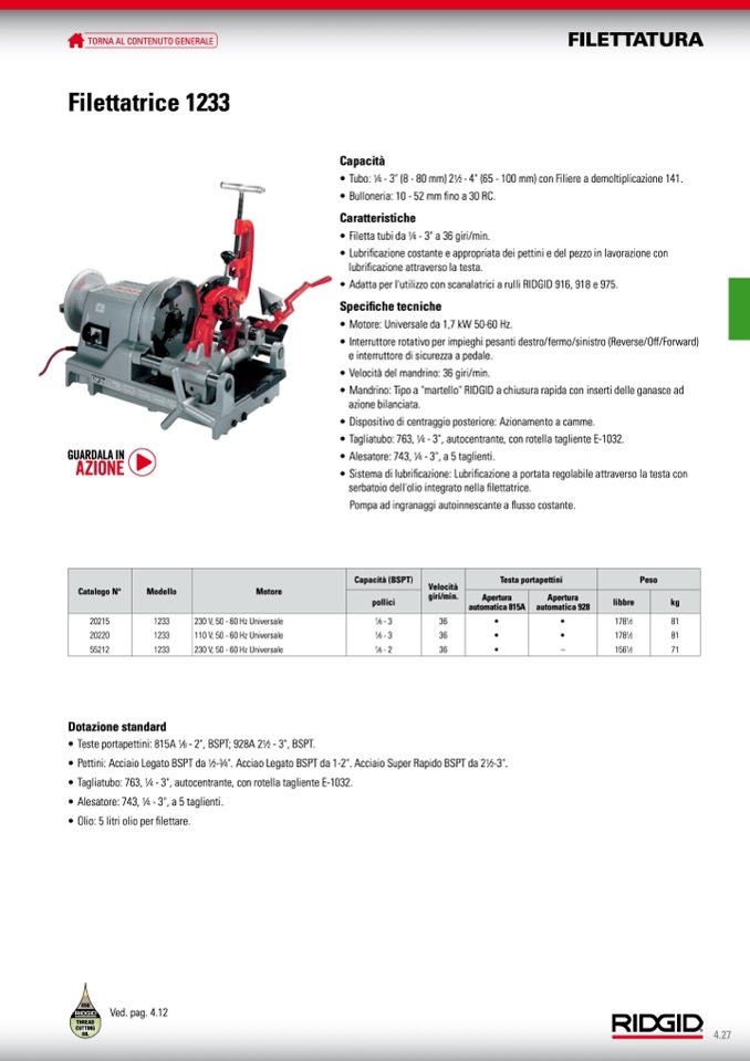 • Olio: 5 litri olio per filettare.