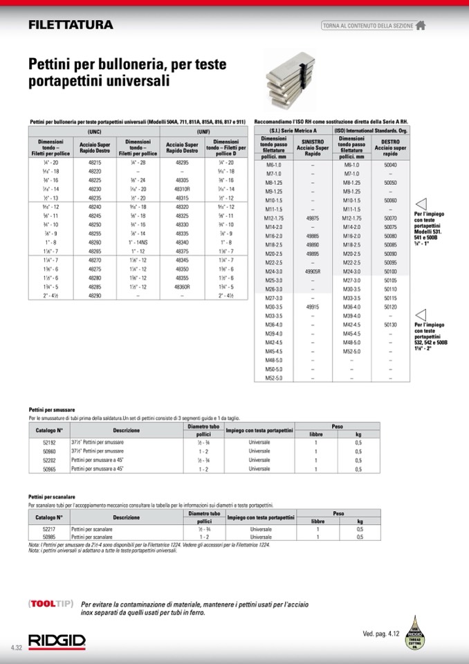 Pettini per bulloneria per teste portapettini universali (Modelli 504A, 711, 811A, 815A, 816, 817 e 911)