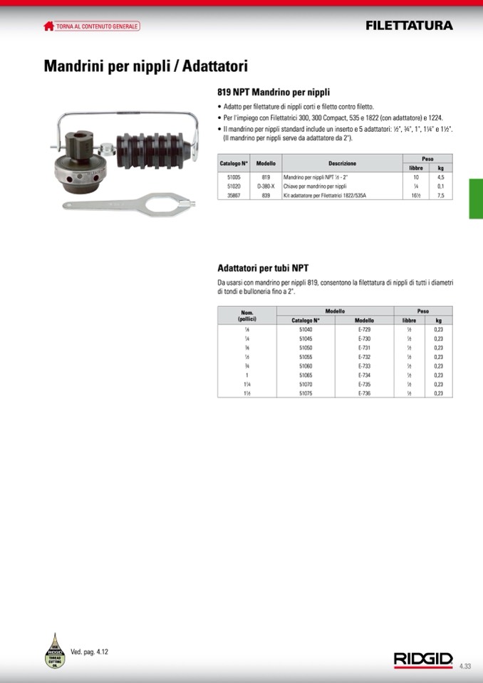 • Per l'impiego con Filettatrici 300, 300 Compact, 535 e 1822 (con adattatore) e 1224.