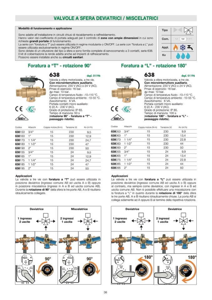 Sono dotate di un otturatore del tipo a sfera e sono fornite complete di servocomando a 3 contatti, serie 638.