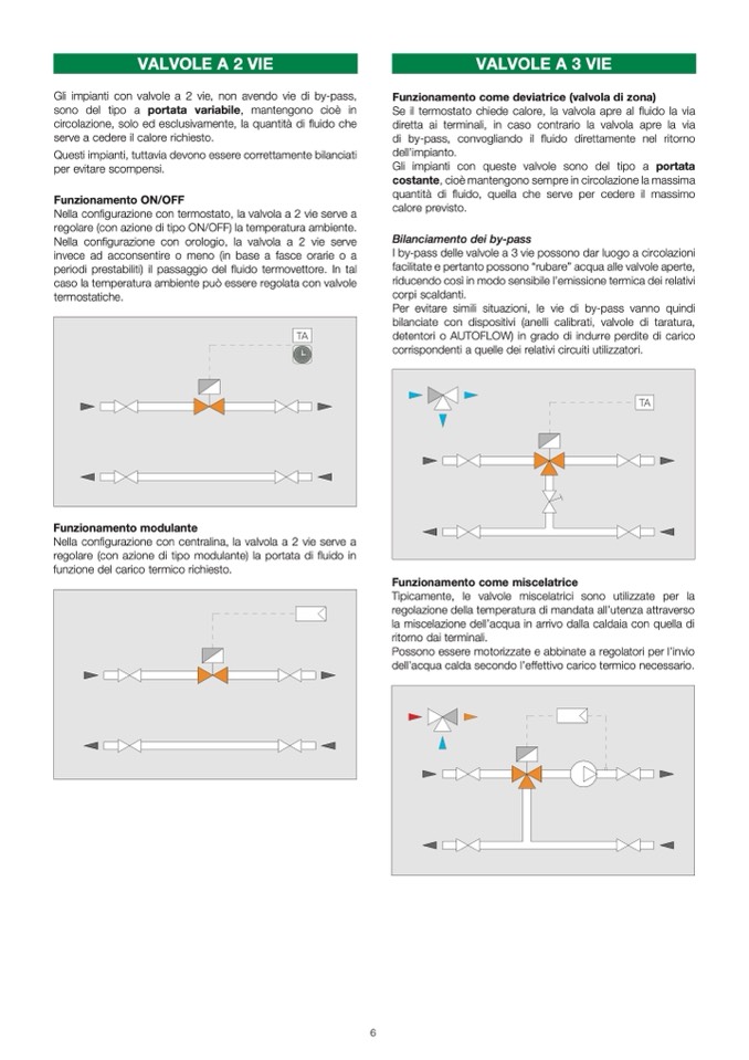 Gli impianti con valvole a 2 vie, non avendo vie di by-pass,