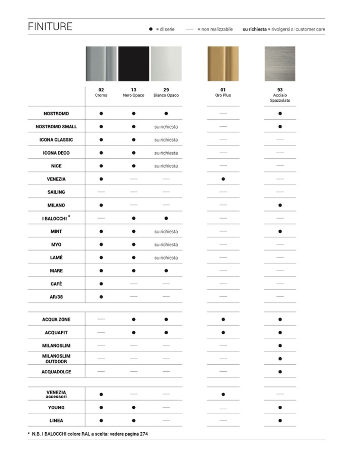 * N.B. I BALOCCHI colore RAL a scelta: vedere pagina 274