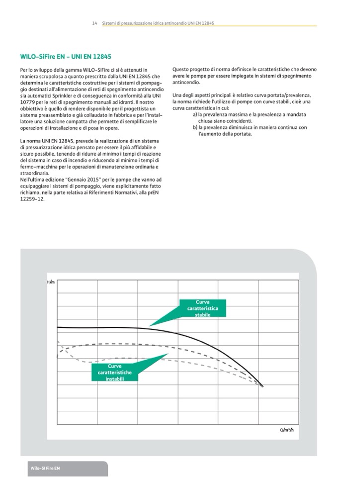 la norma richiede l’utilizzo di pompe con curve stabili, cioè una