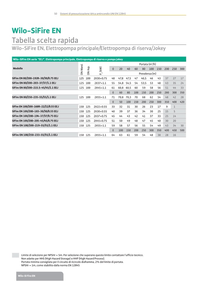 Limite di selezione per NPSHr = 5m. Per selezione che superano questo limite contattare l’ufcio tecnico.