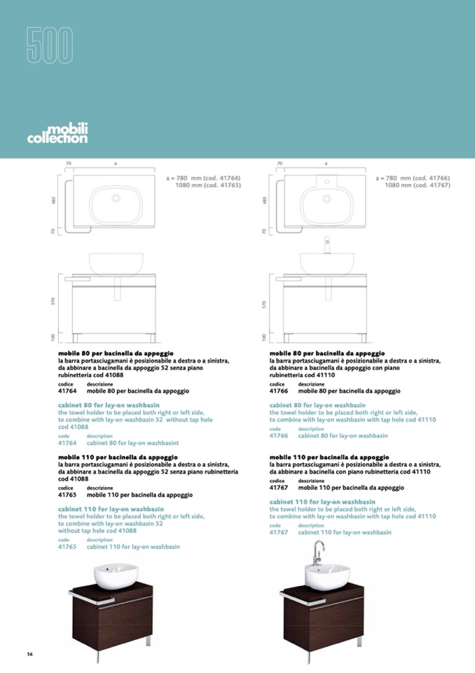 da abbinare a bacinella con piano rubinetteria cod 41110