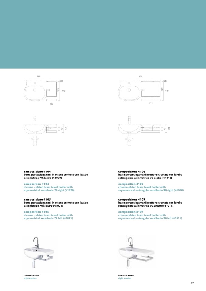 asymmetrical rectangular washbasin 90 right (41010)