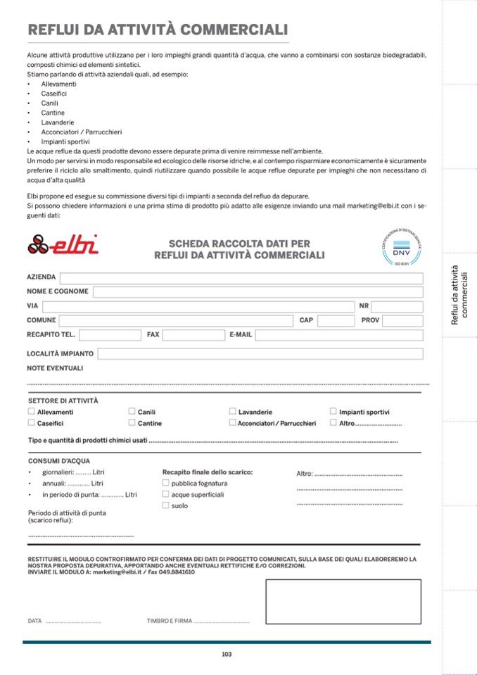 Si possono chiedere informazioni e una prima stima di prodotto più adatto alle esigenze inviando una mail marketing@elbi.it con i se