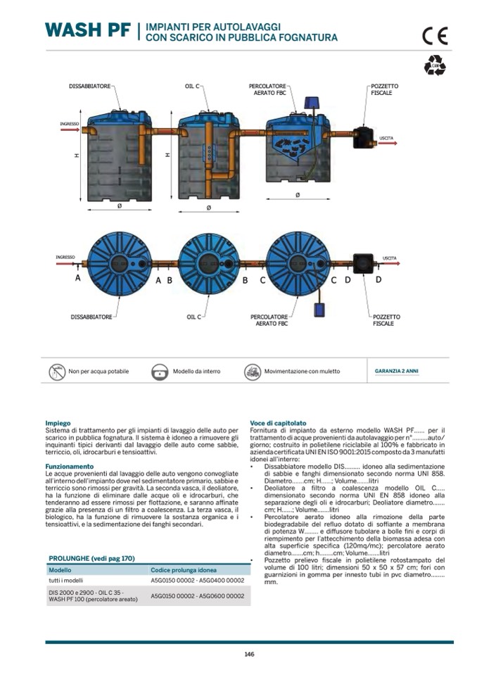 scarico in pubblica fognatura. Il sistema è idoneo a rimuovere gli