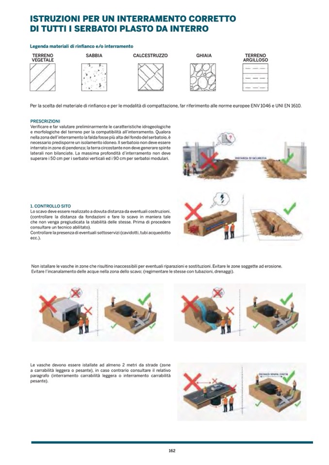 Non istallare le vasche in zone che risultino inaccessibili per eventuali riparazioni e sostituzioni. Evitare le zone soggette ad erosione