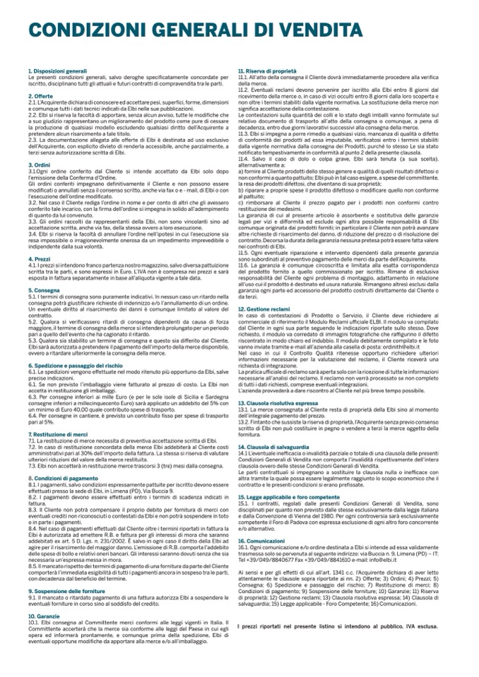 3.1.Ogni ordine conferito dal Cliente si intende accettato da Elbi solo dopo