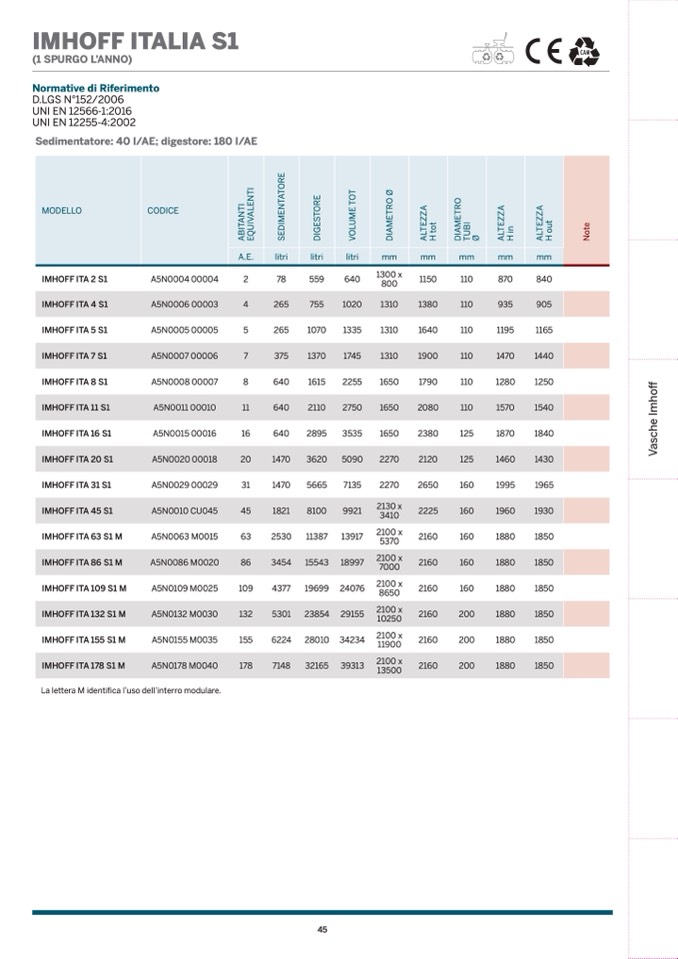 Sedimentatore: 40 l/AE; digestore: 180 l/AE