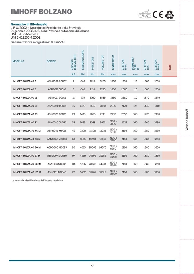 Sedimentatore e digestore: 0.3 m3/AE