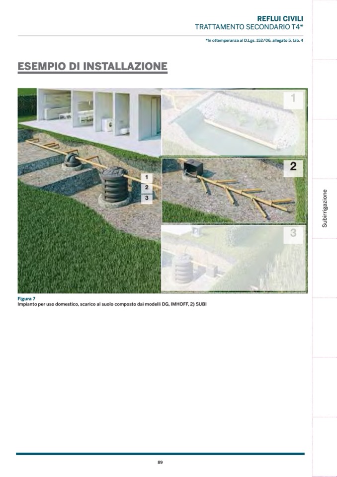 Impianto per uso domestico, scarico al suolo composto dai modelli DG, IMHOFF, 2) SUB