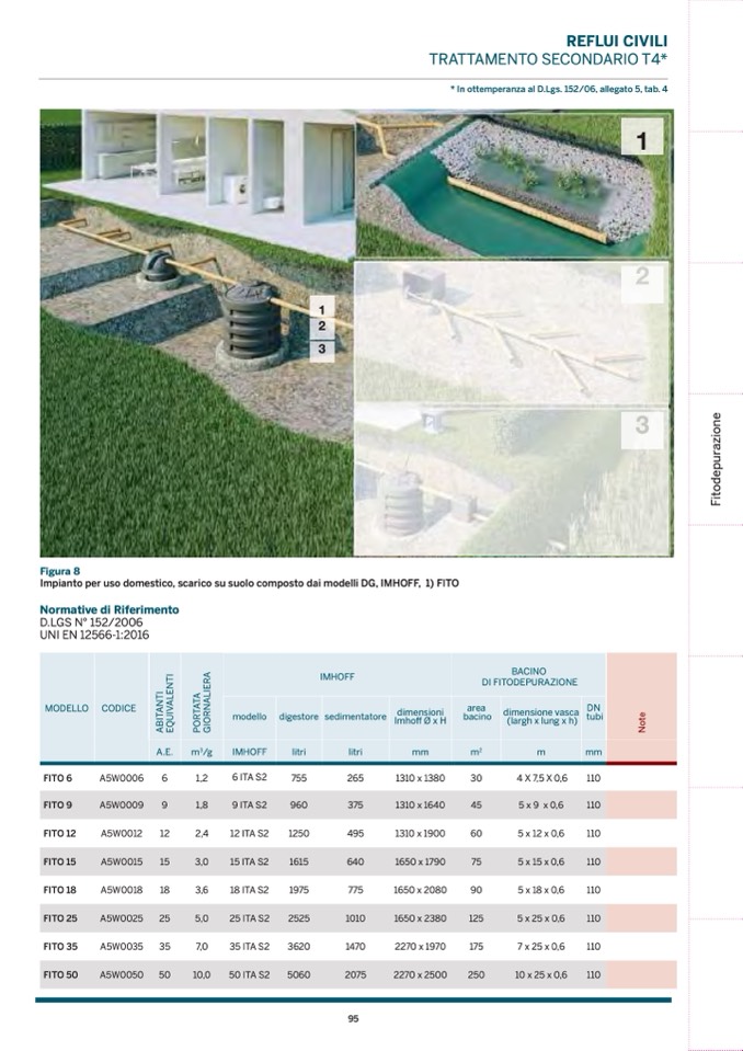 Impianto per uso domestico, scarico su suolo composto dai modelli DG, IMHOFF, 1) FITO