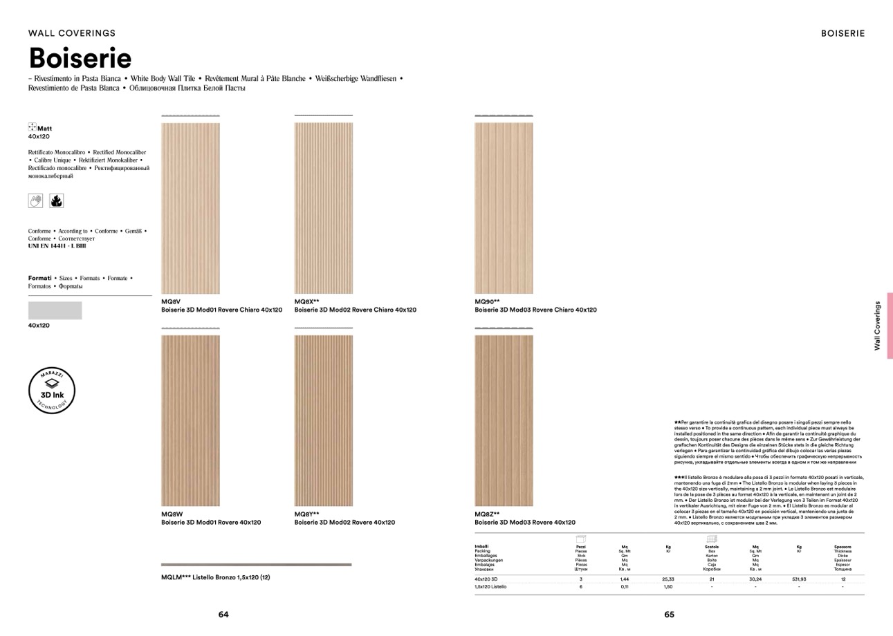 the 40x120 size vertically, maintaining a 2 mm joint. • Le Listello Bronzo est modulaire