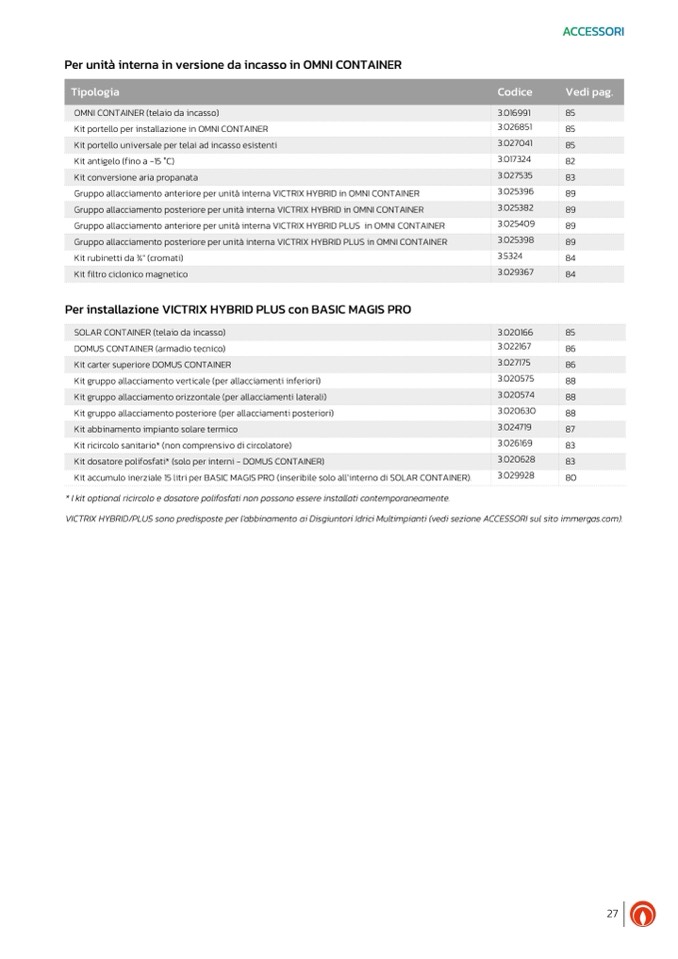 VICTRIX HYBRID/PLUS sono predisposte per l'abbinamento ai Disgiuntori Idrici Multimpianti (vedi sezione ACCESSORI sul sito immergas.com).
