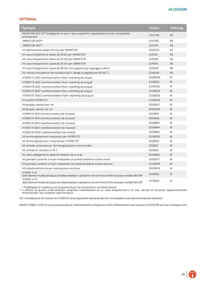 MAGIS COMBO V2/PLUS sono predisposte per l'abbinamento ai Disgiuntori Idrici Multimpianti (vedi sezione ACCESSORI sul sito immergas.com).